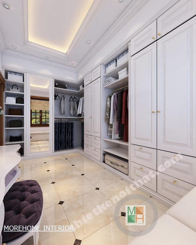 Chiêm ngưỡng mẫu thiết kế tủ quần áo màu trắng kịch trần âm tường mang phong cách tân cổ điển sang trọng phù hợp cho chung cư cao cấp, biệt thự, nhà phố,...