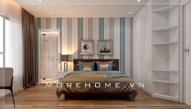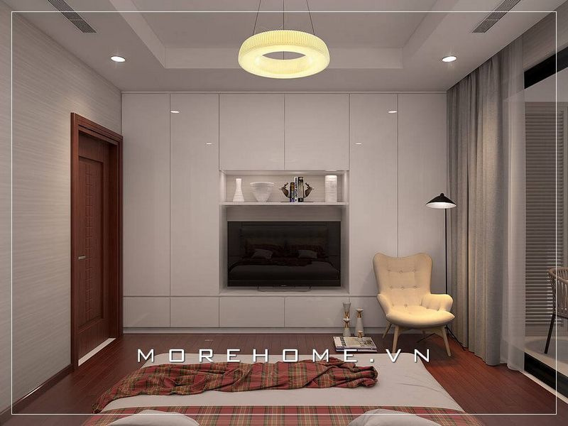 Tủ quần áo âm tường cánh mở hiện đại tạo cho không gian phòng ngủ thêm phần thoải mái và rộng thoáng hơn cả