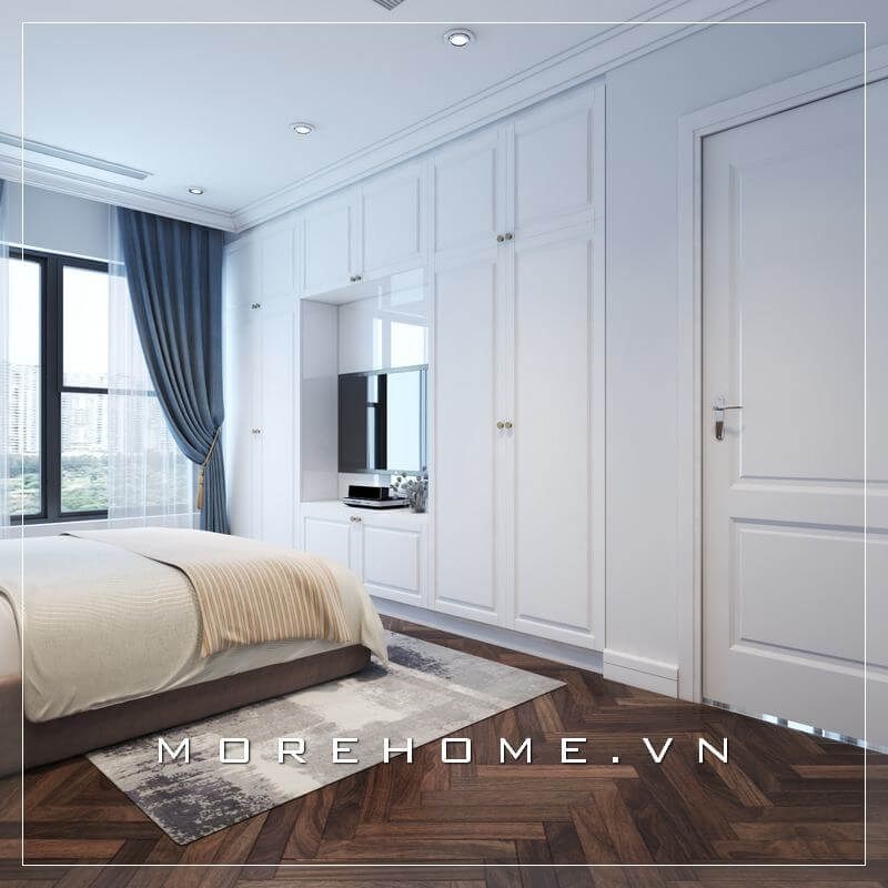 Tủ quần áo gỗ màu trắng tinh tế tạo điểm nhấn hoàn hảo cho không gian phòng ngủ thêm sang trọng và ấn tượng