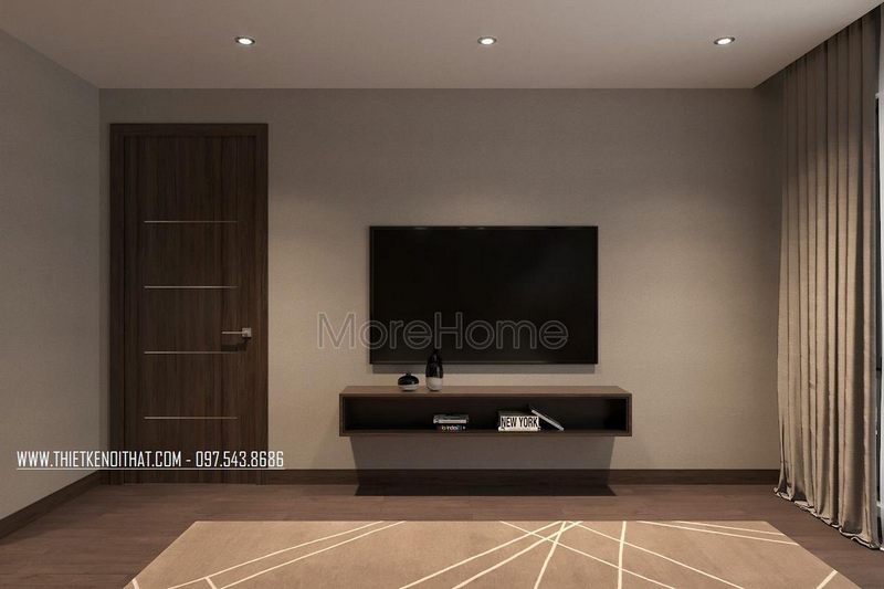 Kệ tivi treo tường gỗ công nghiệp hiện đại có thiết kế thẩm mỹ cao, giúp không gian trở nên gọn gàng.